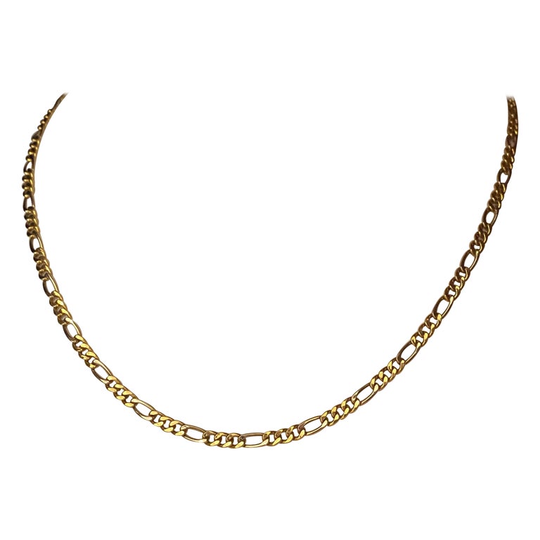 Two Tone 18K 750 White and Yellow Gold Figaro Links Vintage Chain 50.5cm Italy Very well made.