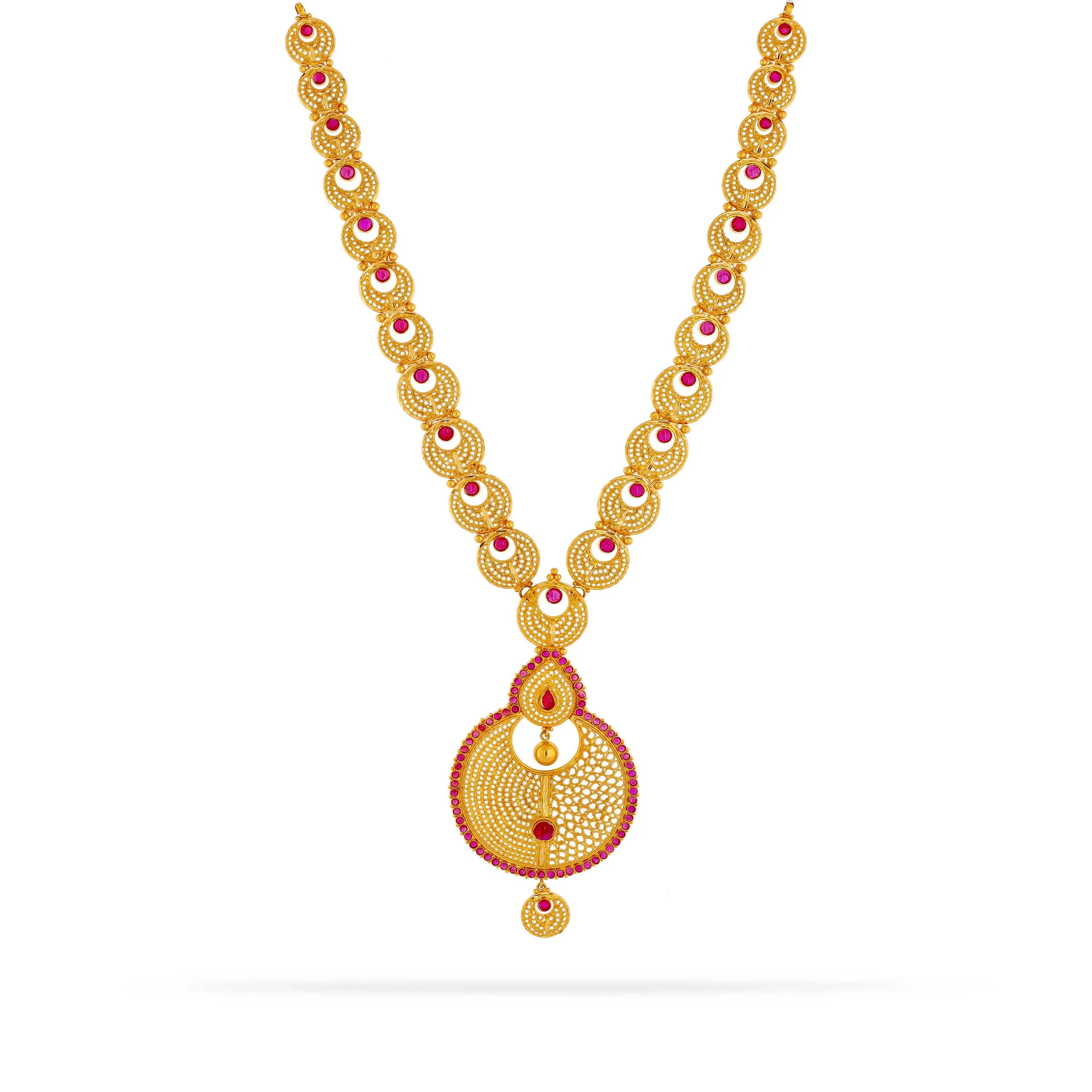 Tiny Flower Design Ruby Stone One Gram Gold Long Haram HR2081 Very well made.
