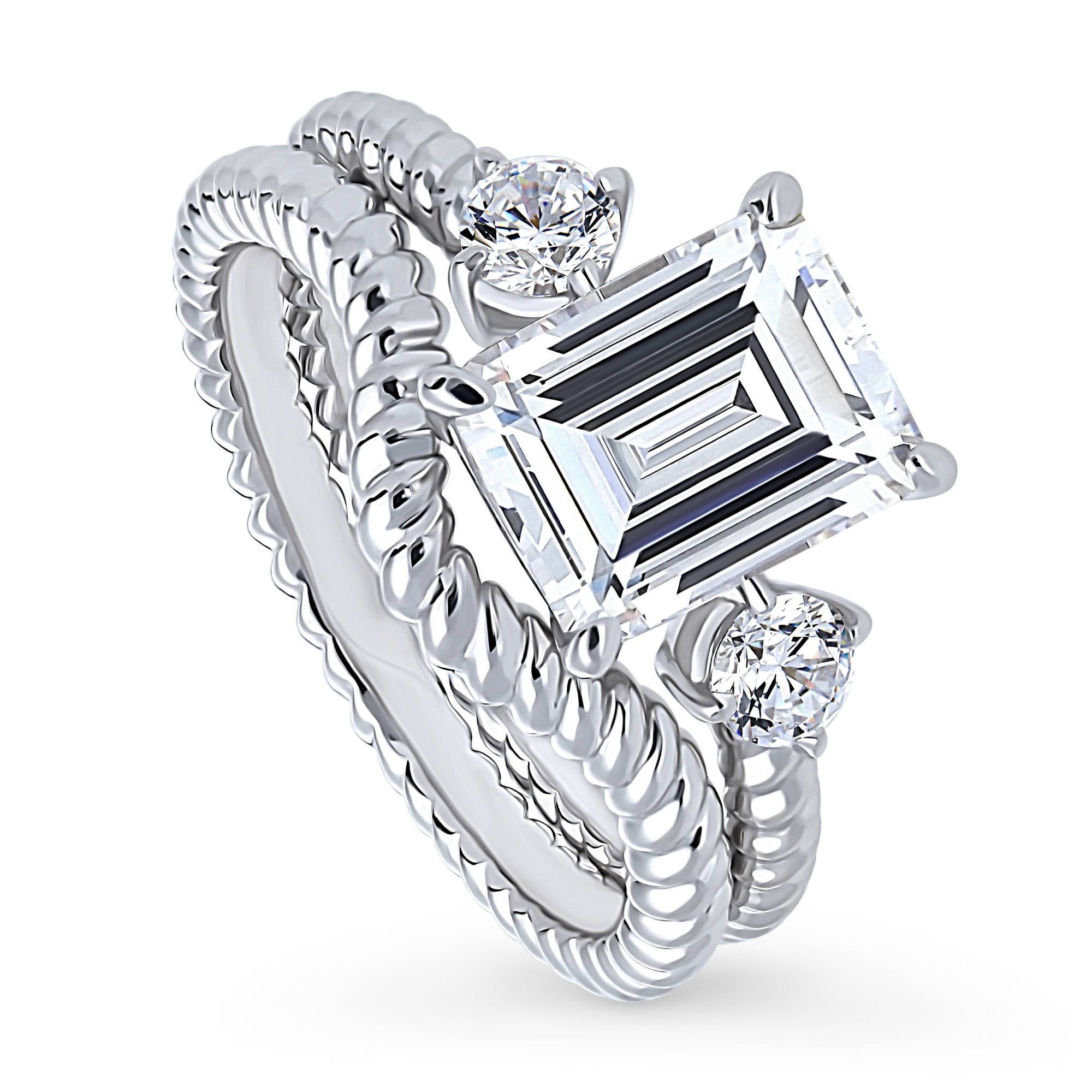 BERRICLE Sterling Silver 3 Stone Wedding Engagement Rings Emerald Cut Cubic Zirconia CZ Chevron Ring Set for Women Rhodium Plated Size 8 Walmart Very well made.