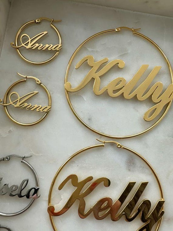 NON TARNISH Hypoallergenic Custom Name Hoop Earrings Gold or Silver Plated Personalised Name Earrings Gold Large Hoops Custom Name Etsy Very well made.