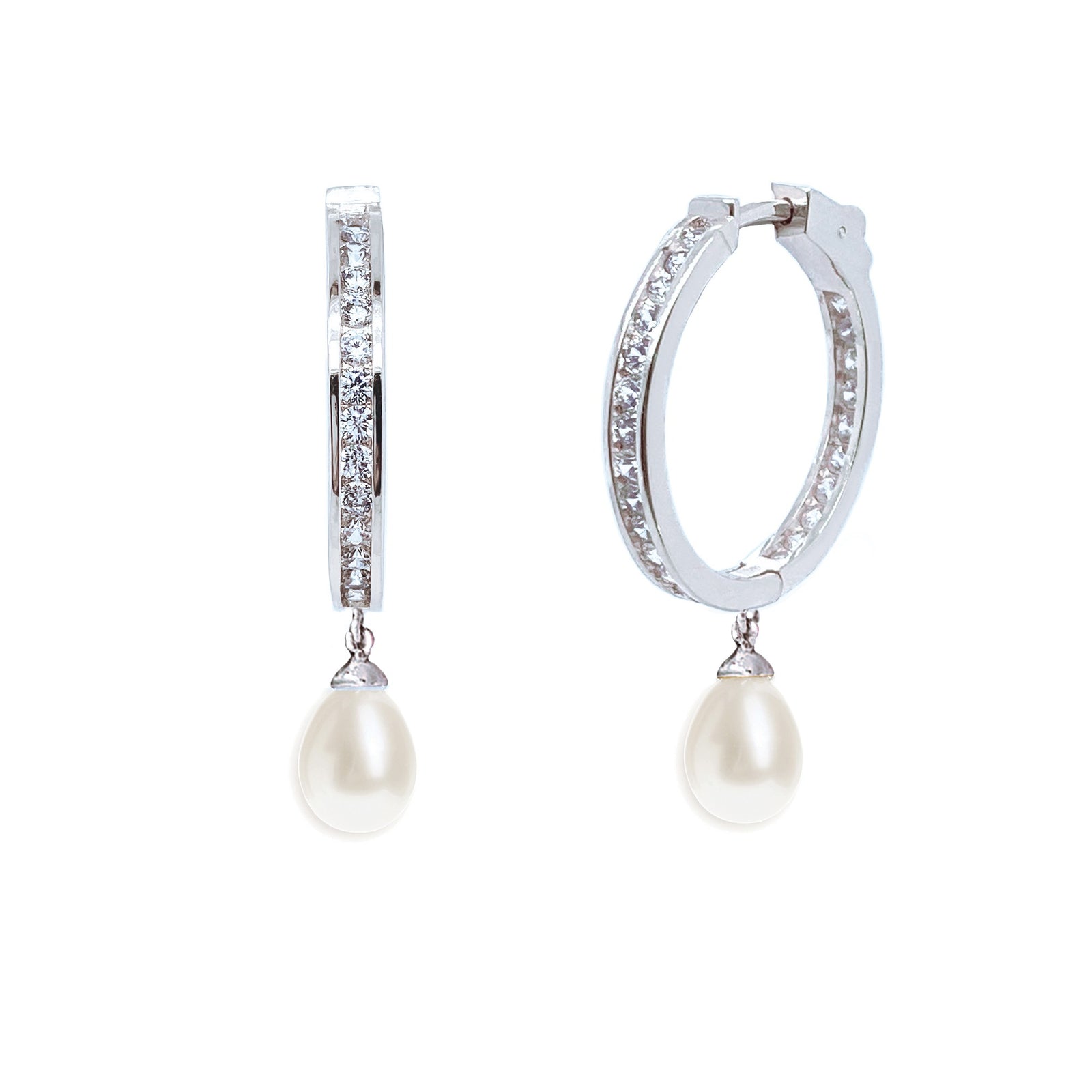 Silverings 925 Sterling Silver Pearl Drop Hoop Earrings Very well made.