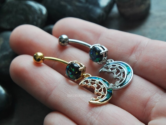 Constellation Moon Belly Button Ring 14g 7 16 Silver or Gold 316L Stainless Surgical Steel Opal Glitter Gem Sea Shell Dangle Charm Navel Very well made.