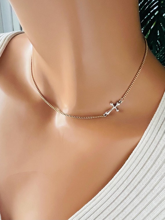 Two Tone Stainless Steel Sideways Cross Necklace Women Girls Small Silver Sideways Cross Sideway Cross Charm Necklace Christian Gift Faith Etsy Very well made.