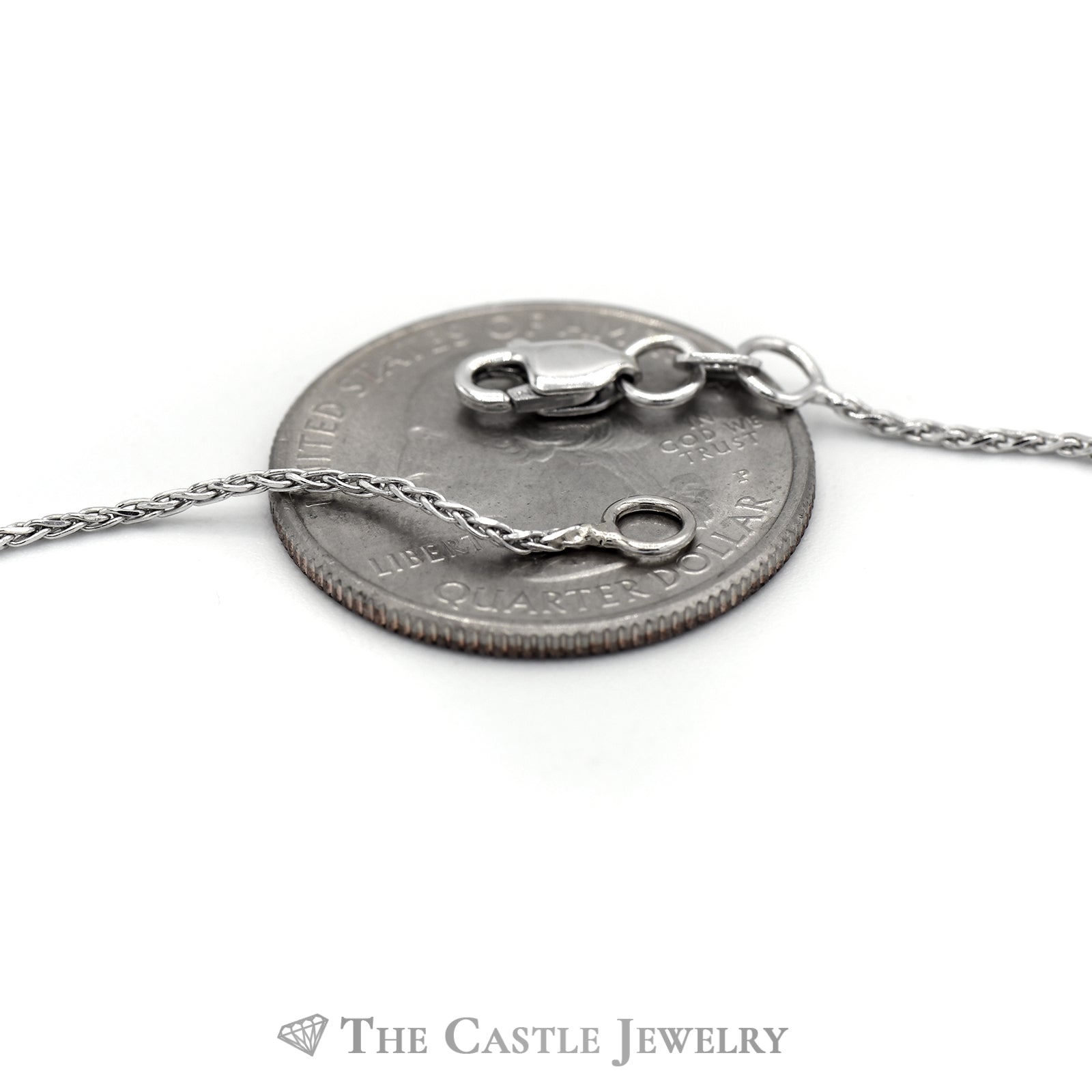 16 Necklace with O Ring Pendant with Round Diamond Solitaire in 14KT White Gold Very well made.