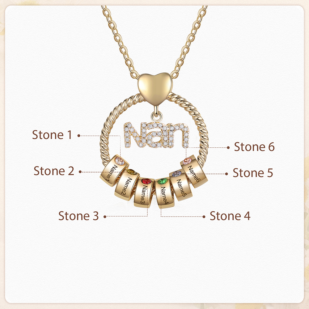 6 Names Personalized Nan Circle Necklace With 6 Birthstones Pendant Engraved Names Gift For Nan Nana Nanny Granny Jessemade UK Very well made.
