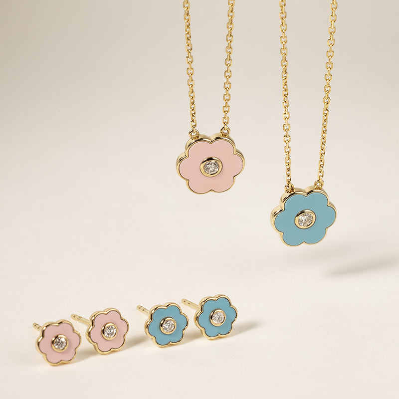 Mother daughter Matching 18K Gold Enamel Diamond Petite Flower Stud Earrings HELAS Jewelry Very well made.