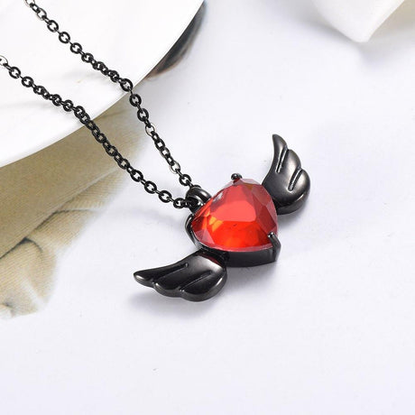 Red Crystal Heart Angel Wing Cremation Ash Necklace Cherished Emblems Very well made.