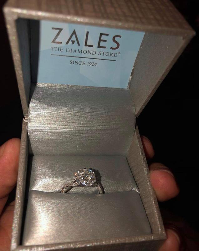 7 8 CT. T.W. Diamond Flower Frame Twist Engagement Ring in 14K White Gold Zales Very well made.