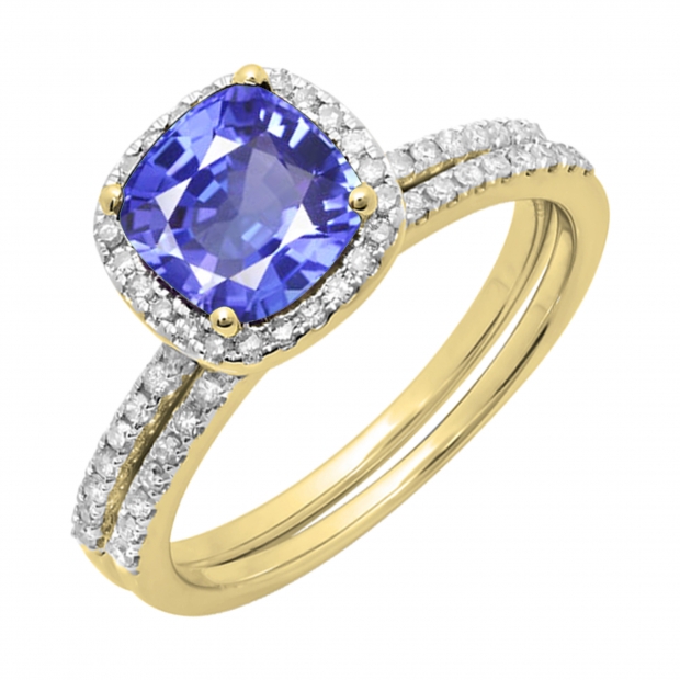 Buy 14K Yellow Gold 7 MM Cushion Tanzanite Round Diamond Ladies Bridal Engagement Ring Set Online at Dazzling Rock Very well made.