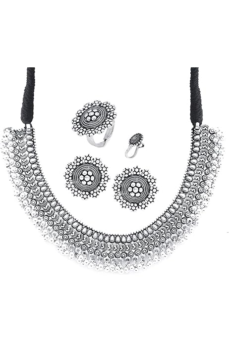 Amazon Yellow Chimes Antique Silver Oxidized Ethnic Indian Traditional Fashion Pendant Set Jewelry for Women Clothing Shoes Jewelry Very well made.