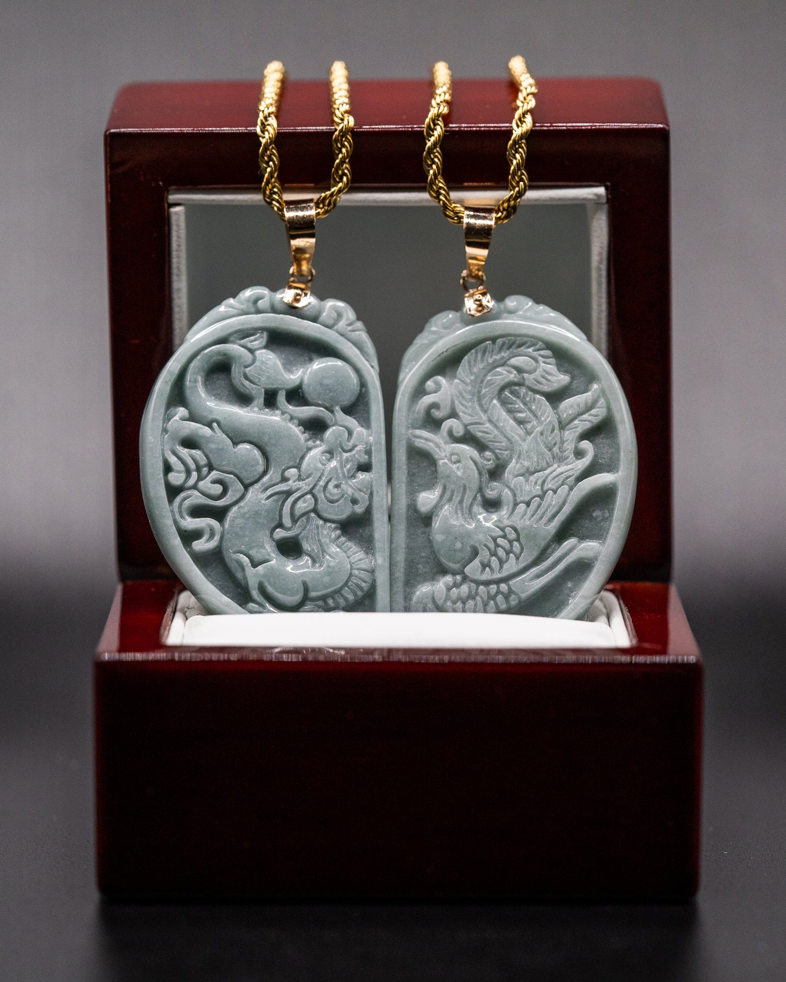 Dragon Phoenix Split Heart Jade Couples Pendant TWO IN ONE The Jade Jewelers Very well made.
