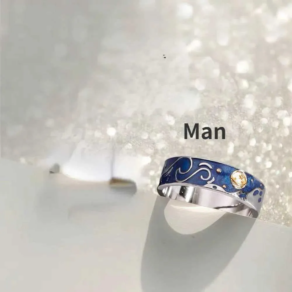 Moon Starry Sky Finger Van Gogh Couple Rings Student Painting eBay Very well made.
