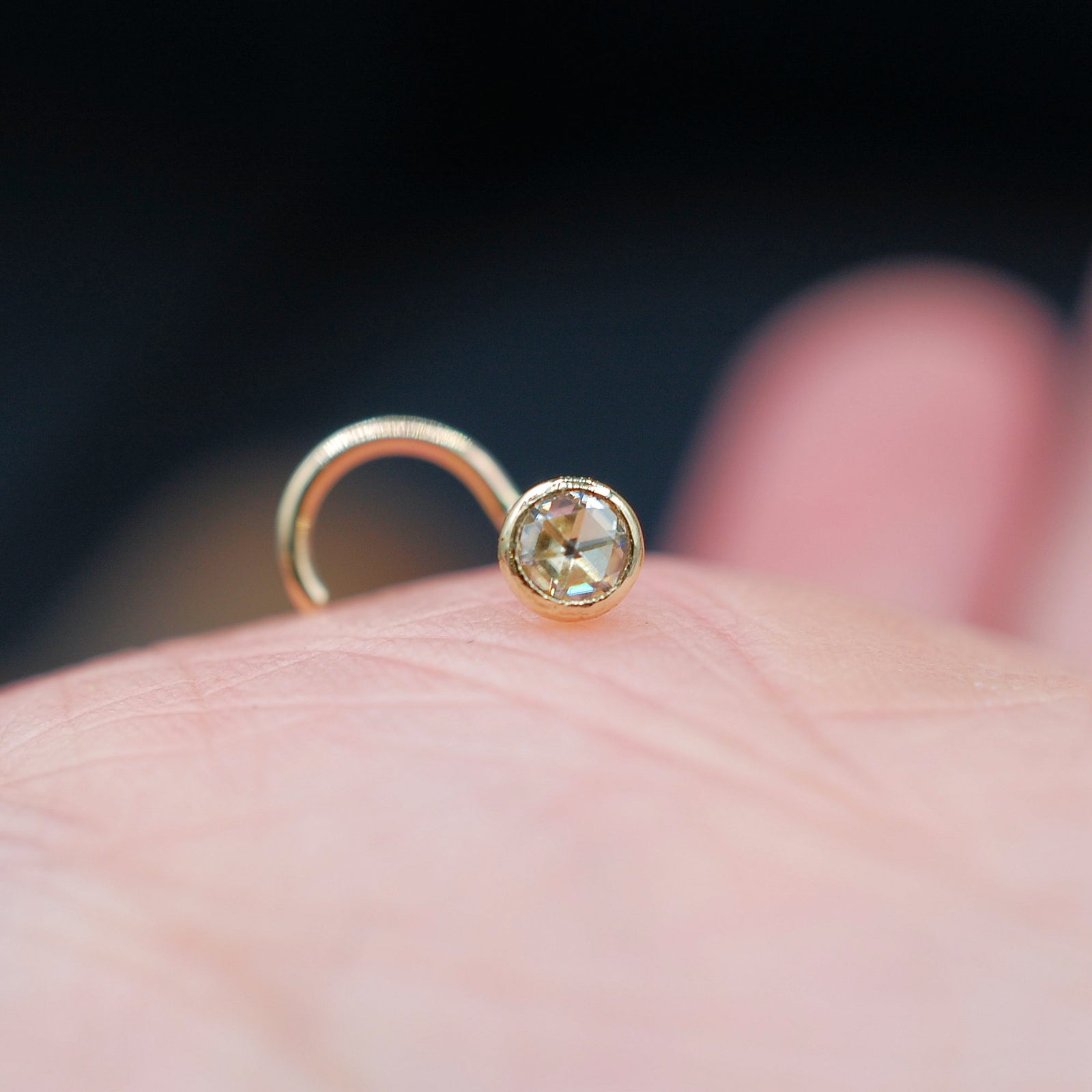 20g 14kt Yellow Gold Nose Ring Bezel Set 4 STONE Moissanite Diamond Nose Hoops eBay Very well made.