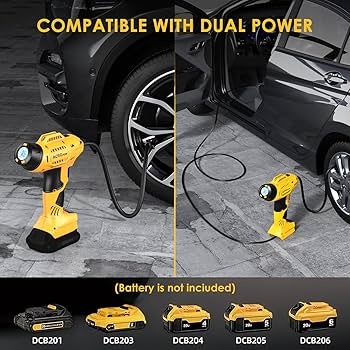 ACROPOW Tire Inflator Portable Air Compressor for Dewalt 20V Battery Cordless Car Tire Pump with 12V DC Adapter and Digital Pressure Gauge for Car Very well made.