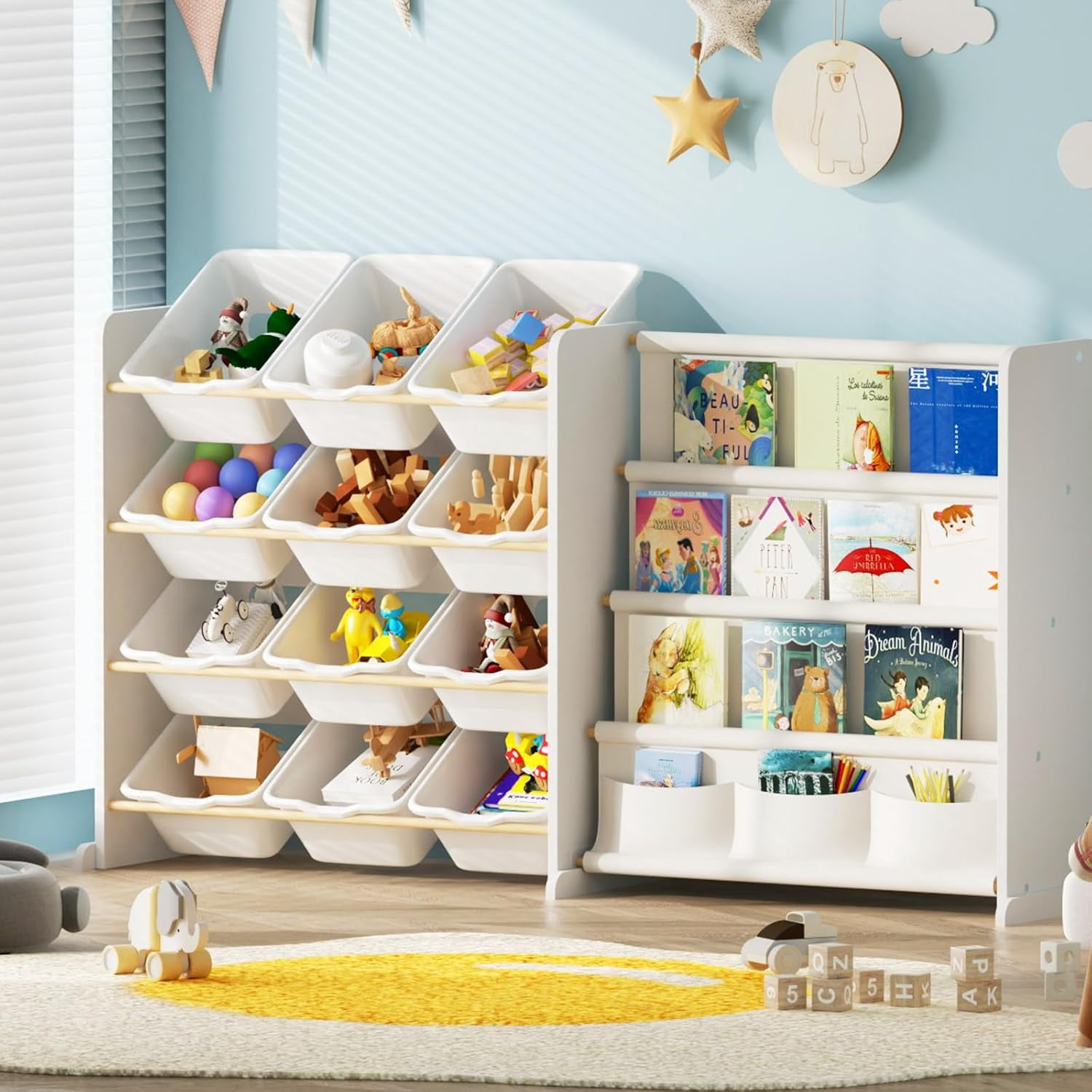 Kids Toy Storage Organizer Toy Organizer with Kids Bookshelf Toy Storage with 12 Toy Multi color Bins and 4 Book Shelves Toy Organizers and Storage for Playroom Nursery Kids Room Burlywood Very well made.
