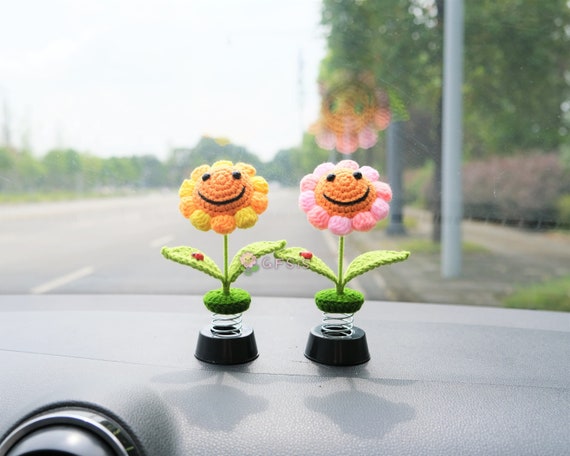 Crochet Sunflower Car Dashboard Decor Smiley Sunflower Bobblehead Car Interior Accessories for Women Boho Car Accessory Car Air Freshener Etsy Very well made.