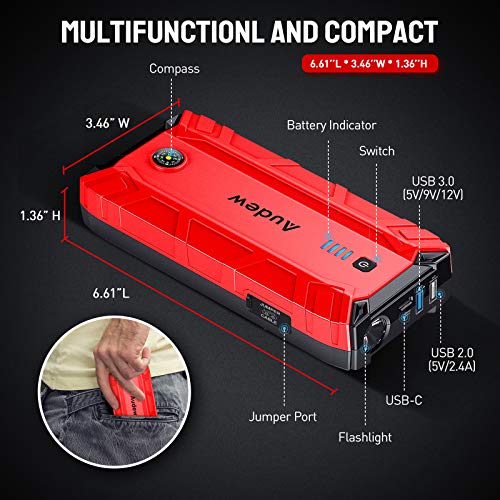 Audew Jump Starter 1500A Peak 18000mAh Portable Jump Starter Up to 8L Gas or 6.0L Diesel Engine 12V Auto B Very well made.