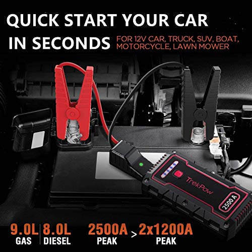 Battery Jump Starter TrekPow TJ2500 2500A Peak 18000mAh Jump Starter Battery Pack Up to 9.0L Gas 8.0L Diesel Engine 12V Jump Box with Smart Jumper Cables IP68 Waterproof QC3.0 Flashlight in Bahrain Wh... Very well made.