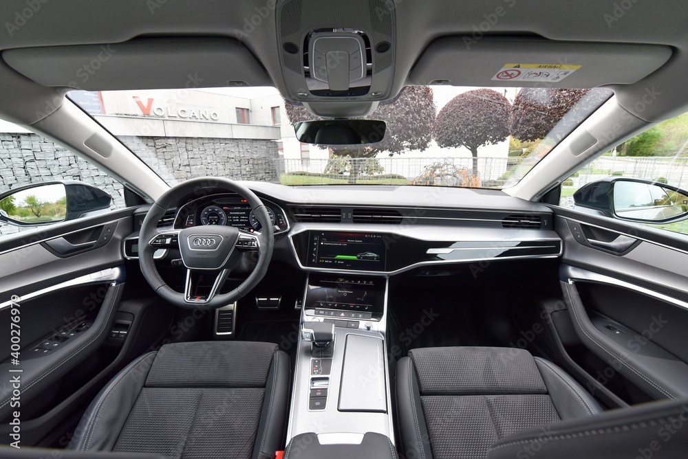 Stock Foto Audi A7 55 TFSI e quattro. Plug in hybrid car. Interior cabin. 10 27 2020 Prague Czech Republic. Adobe Stock Very well made.