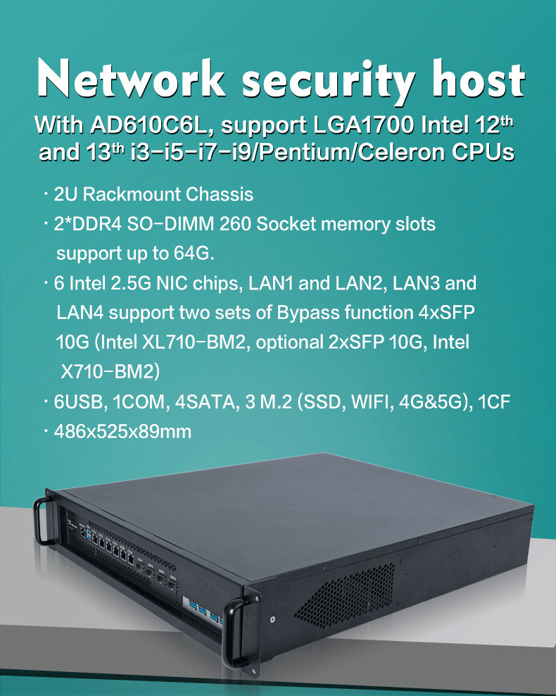 Piesia 6LAN 4 SFP 10G Industrial Firewall Mini PC 2U Server Case Support Intel 12th LGA1700 13th i3 i5 i7 i9 Pentium Celeron CPU BestSuppliers Very well made.