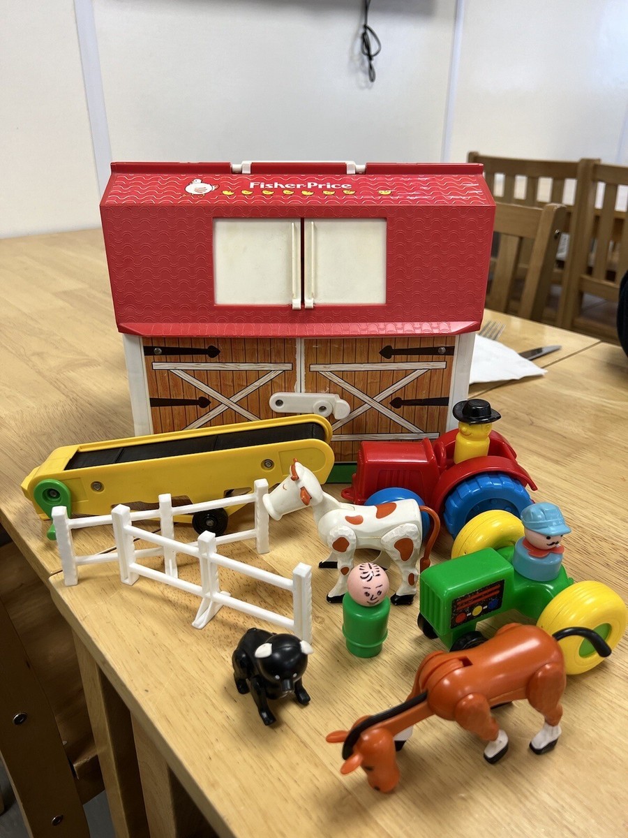 VINTAGE FISHER PRICE FAMILY PLAY FARM Animals 1967 CHILD TOY BARN Little People Very well made.