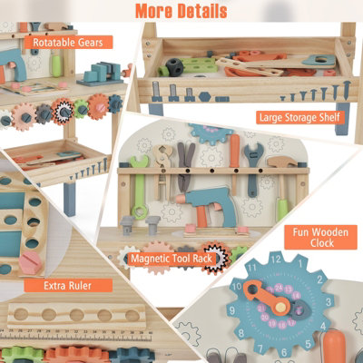 Costway Kids Play Tool Workbench Large Wooden Tool Bench w Rich Tool Set Very well made.
