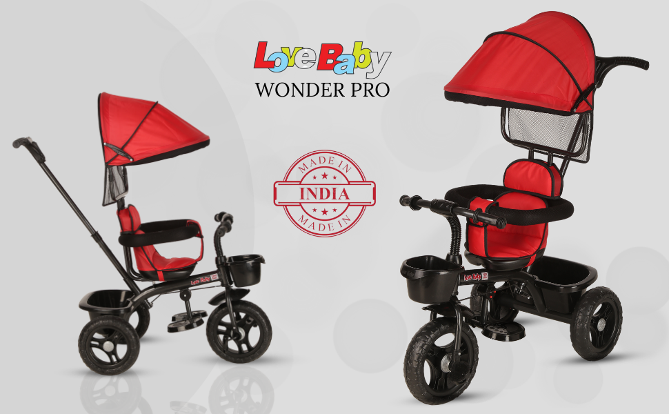 Lovebaby Wonder Pro Tricycle for Kids 2 5 Years Toddler Tricycle with Adjustable Parental Handle Foldable Canopy footrest Safety Harness Cushioned Seat Storage Baskets Red 2 to 5 Years Amazon.in Toys ... Very well made.
