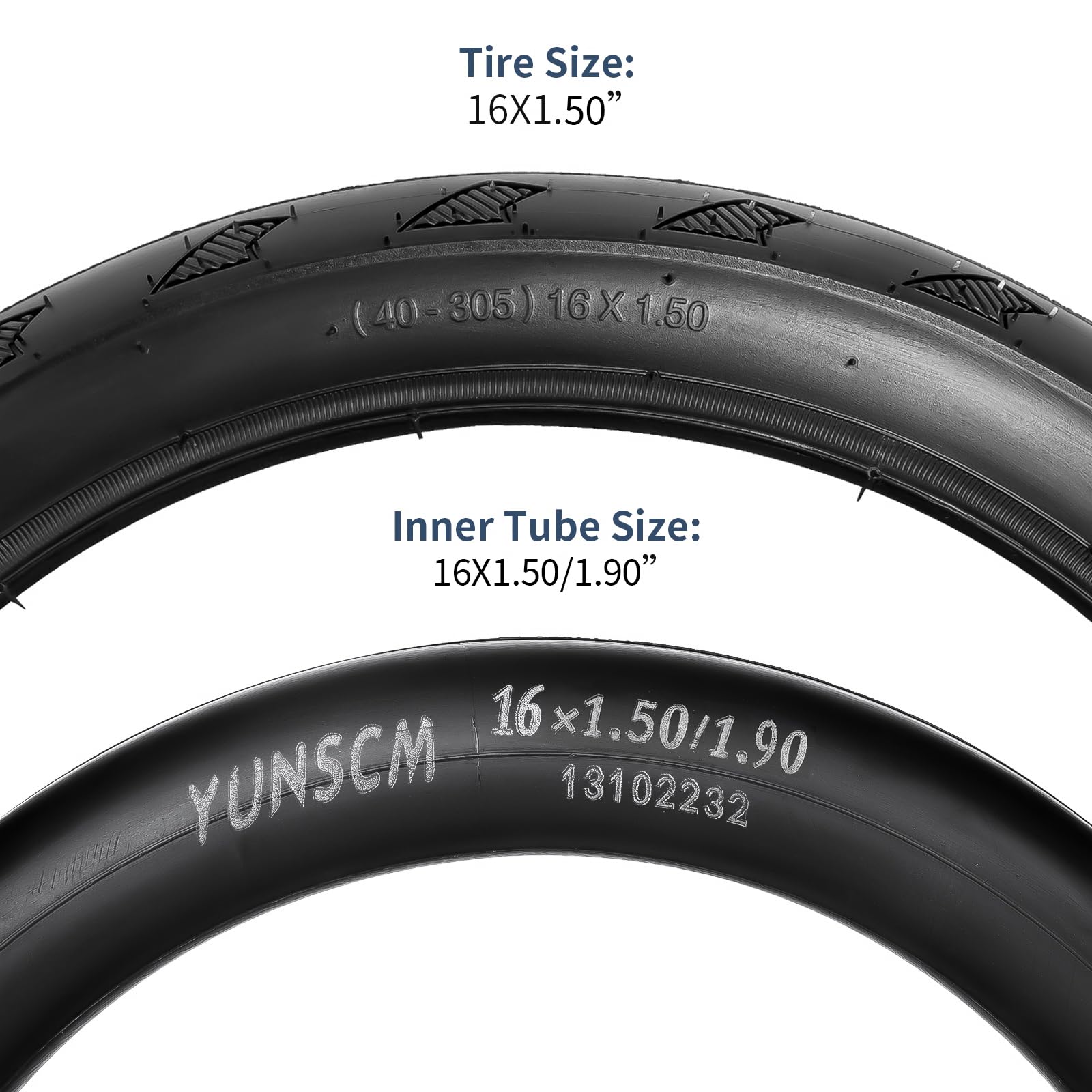 2 Pack 16 Bike tyres 16x1.5 40 305 Plus 2 Pack 16 Bike Tubes Schrader Valve 2 rim strips Compatible with 16 x 1.5 Bike tyres and Tubes Y2102 Very well made.