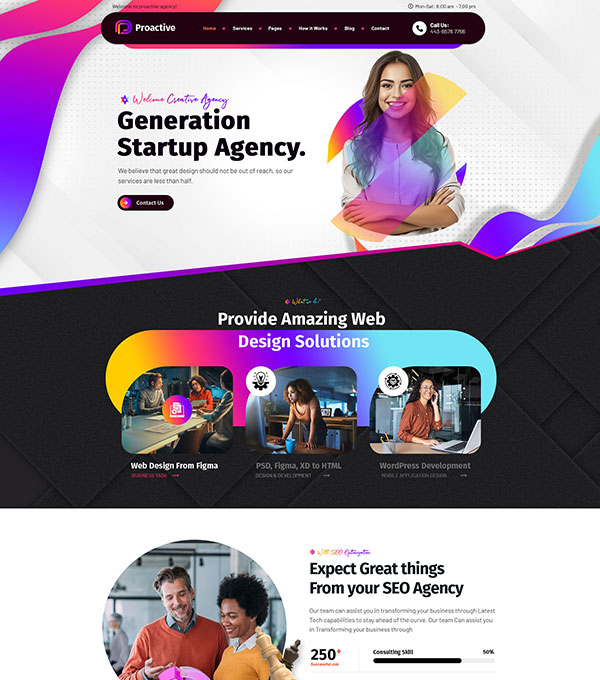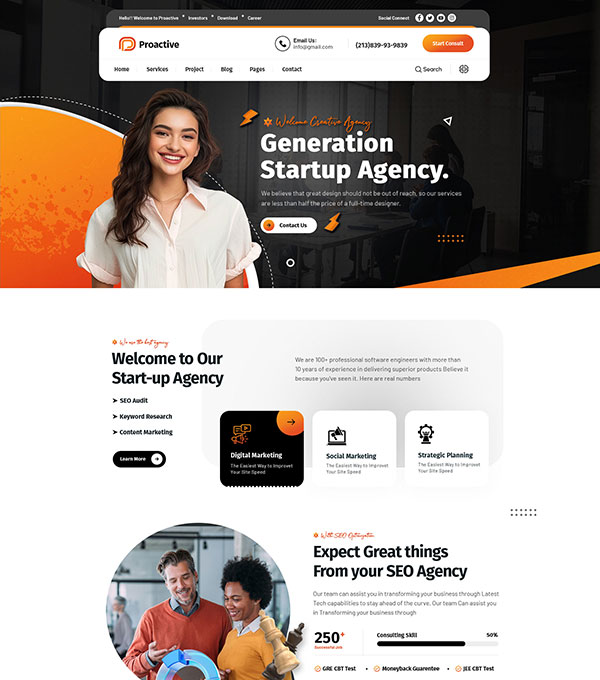 Proactive is a Digital Agency WordPress Theme for any agency, marketing agency, video, technology, creative agency.
